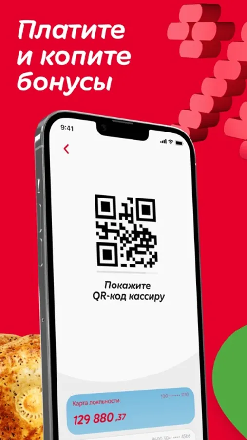 Add any UZCARD or HUMO bank card, link Korzinka loyalty card or register a new one. So you can pay for goods, accrue and write off bonuses via a single QR code, even without having physical cards with you. When paying for a purchase with a loyalty card, a one-time write-off of up to 500 000 bonuses is available.