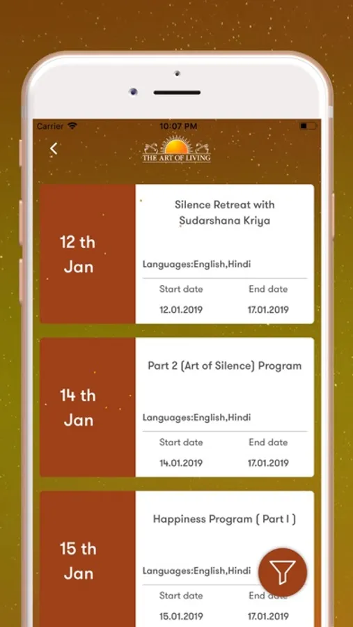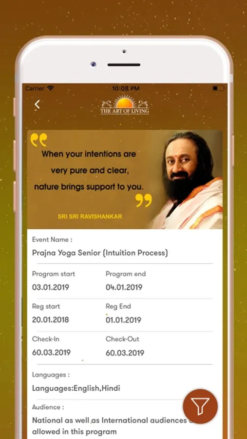 The Art of Living Ashrams App – your connect to the world within. Now register for any Art of Living program in any Art of Living Ashram across the globe through a single app on your phone. Be posted of all events that happen globally across all Art of Living ashrams where ever you may be with app notifications of new events & programs. First visit to the Ashram? Click on the map in your Art of Living Ashrams app and find your way to your desired ashram location. Book appointments at Panchakarma & simply de-stress on your next visit to the Art of Living International Centre, Bangalore. Want to meet Gurudev? Know His schedule & book an appointment to seek His blessings. Share & care by donating to an Art of Living Seva Project of your choice. The Art of Living Ashrams App – the doorway to a world of peace, wisdom, love & inner joy.