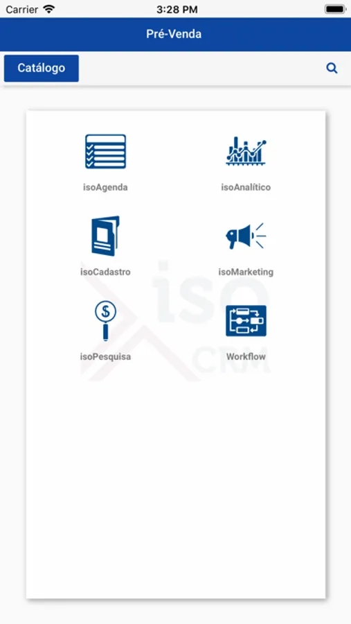 Observação: para utilizar o aplicativo isoCRM Mobile, você deve possuir uma licença de usuário do isoCRM em sua empresa e seu acesso deve ser ativado pelo seu departamento de TI.