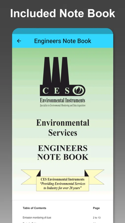 The contents of the CES Environmental Instruments popular Engineers Note Book is preloaded within the app.