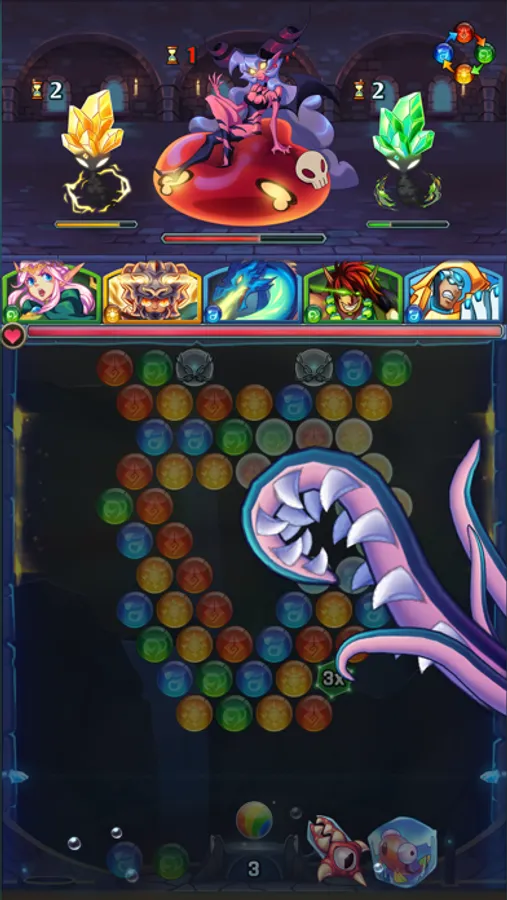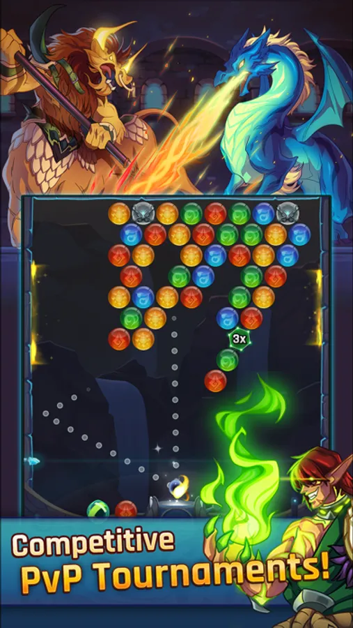 Battles are fast and intuitive. Fusing bubble shooter and tactical RPG elements, every battle will be fresh and exciting! Combine your heroes' skills to crush your enemies, using the right blend of might and magic to gain victory. Keep your wits about you and be ready to fight.