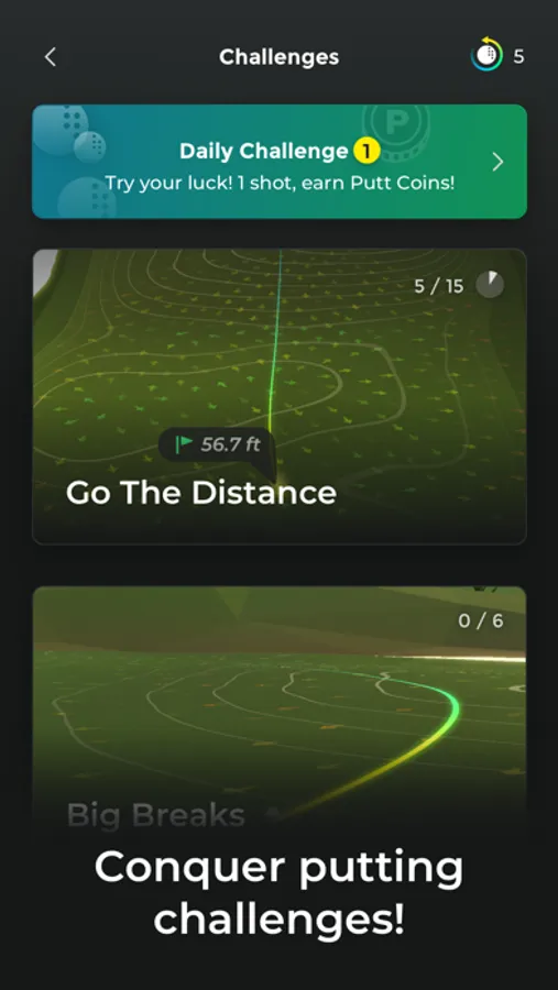 - Earn Putt Coins from completing challenges and winning matches against your Facebook friends.