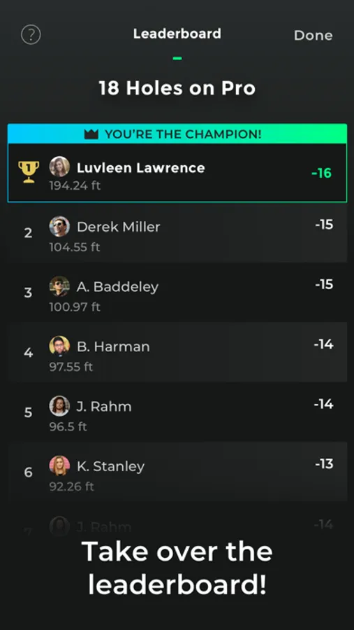 Play on beautiful life like greens as you climb the leaderboard, challenge friends, and complete heart wrenching challenges. Rule the world of putting!