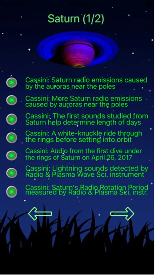 You will love this app. Listen to many very interesting yet sometimes strange, unusual and spooky sounds from black holes, pulsars, stars, planets, moons, comets, meteors, space travel, and interstellar space. Additionally, there are sounds from historical manned and unmanned space missions with communications by astronauts, mission control centers, and other personnel as well as recordings of equipment used in these missions. Many of the sounds have an emphasis on scientific studies and were created by both data and actual audio collected from radio, infrared, and x-ray telescopes, low and high frequency radio receivers, and from sensors built into Mars rovers, probes and space labs. Nearly 70 years of space history are included in this app!