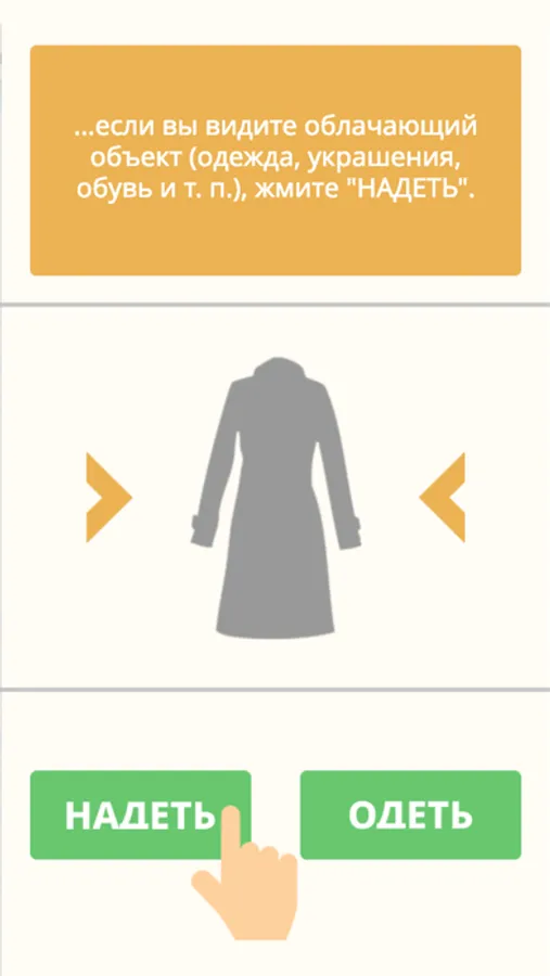 Эта игра призвана устранить путаницу при употреблении слов "одеть" и "надеть". Ваша задача - выбрать правильное слово в зависимости от изображения. Наглядная, легкая форма для освоения этого нюанса русского языка. Играйте, и вы получите понимание и навык правильного употребления слов "одеть" и "надеть". Ну или просто покажите всем, что вы самый грамотный.