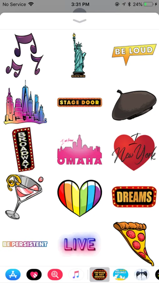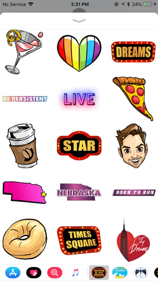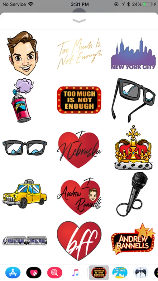 An iOS sticker pack with images inspired by Too Much is Not Enough by Andrew Rannells.