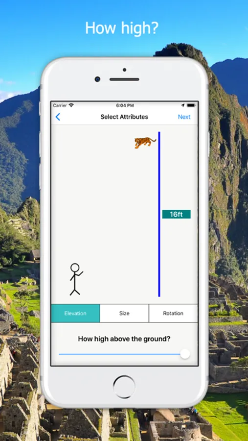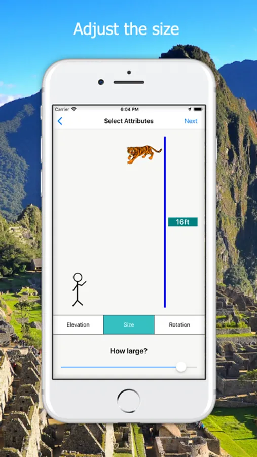 The app then provides a high-definition color palate for you to draw from. There are a variety of brush weights and sizes too! Put finger to touch screen and draw… a shark swimming under the Golden Gate Bridge… a UFO hovering over the Eiffel Tower… or a word of peace at a well-visited memorial. If drawing isn’t your thing, we’ve thought of that too! With Next Dimension You are also able to upload your favorite images and GIFs that “speak” on your behalf. After doodling or uploading, you have complete control to modify your content’s size, physical altitude, and placement. We make it easy for you to express yourself on your surroundings!