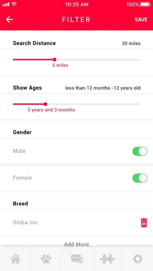 - EASY SEARCH FILTER: Filter your search through breed, age range, gender, likes or dislikes