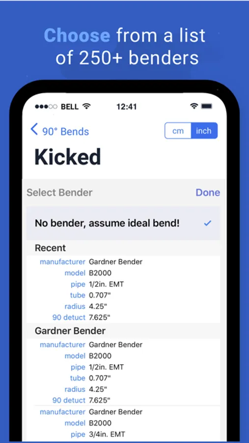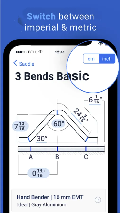Unlike all the other Apps, Conduit Bending comes with advanced built in calculator made by the Creators of Calculator+, so you can easily deal with fractions, convert between cm and inches.