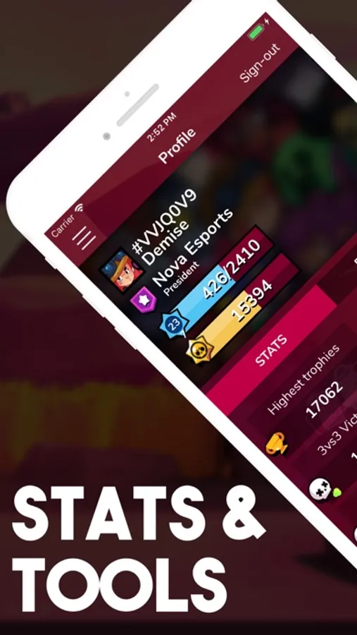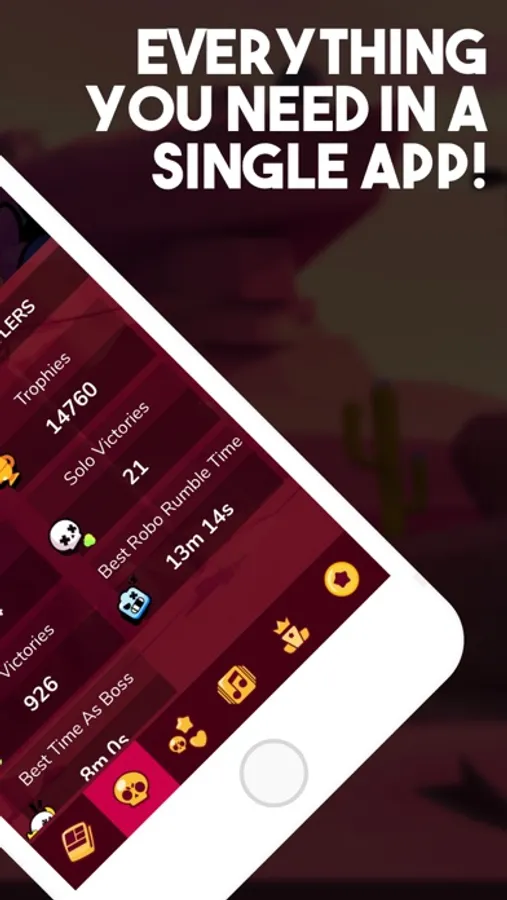 This app is a helper and ally App for Brawl Stars: Review Profile Stats & Analytics of each of your Brawlers; Listen to all the game Music and SFX; Includes the coolest iMessage and WhatsApp Stickers; Stay Up to Date with the News Section, Follow Top brawlers, and much more.