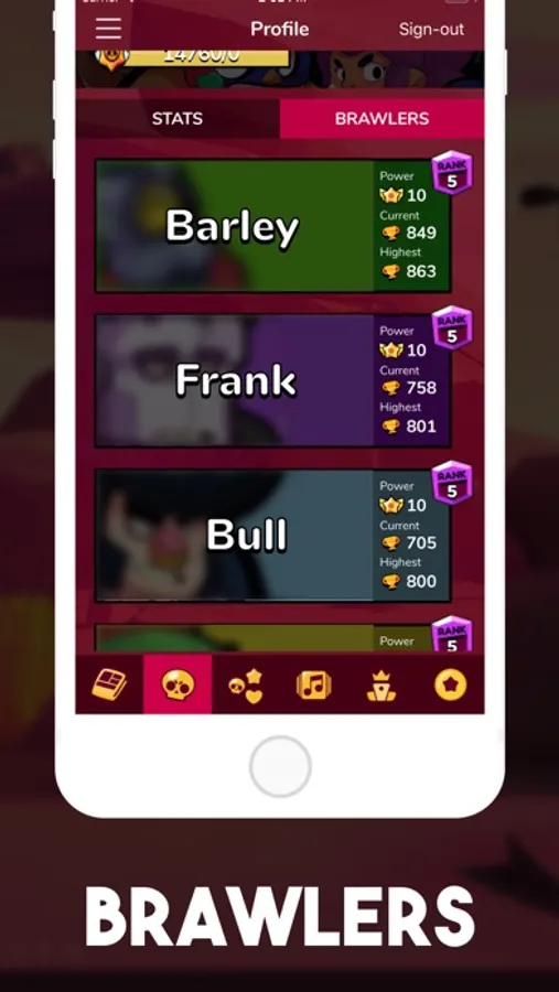 * Profile Stats & Analytics: Keep track of all your progress in the game and Brawlers, you can also follow other players, win rate, level, ran, etc.
