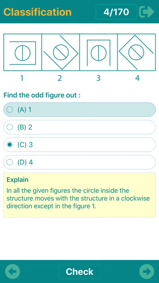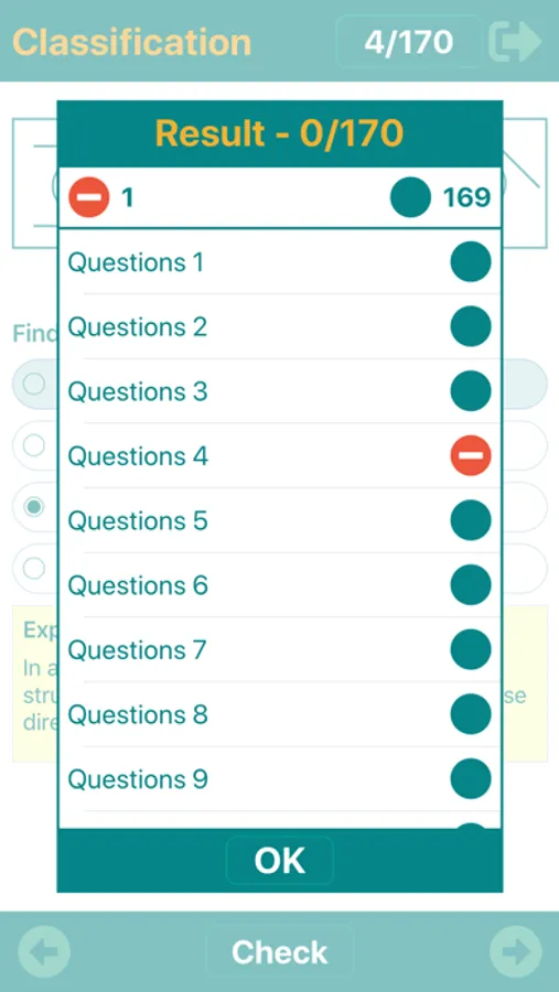 3. You can easily check your answer, result and explain for each question in the practice mode