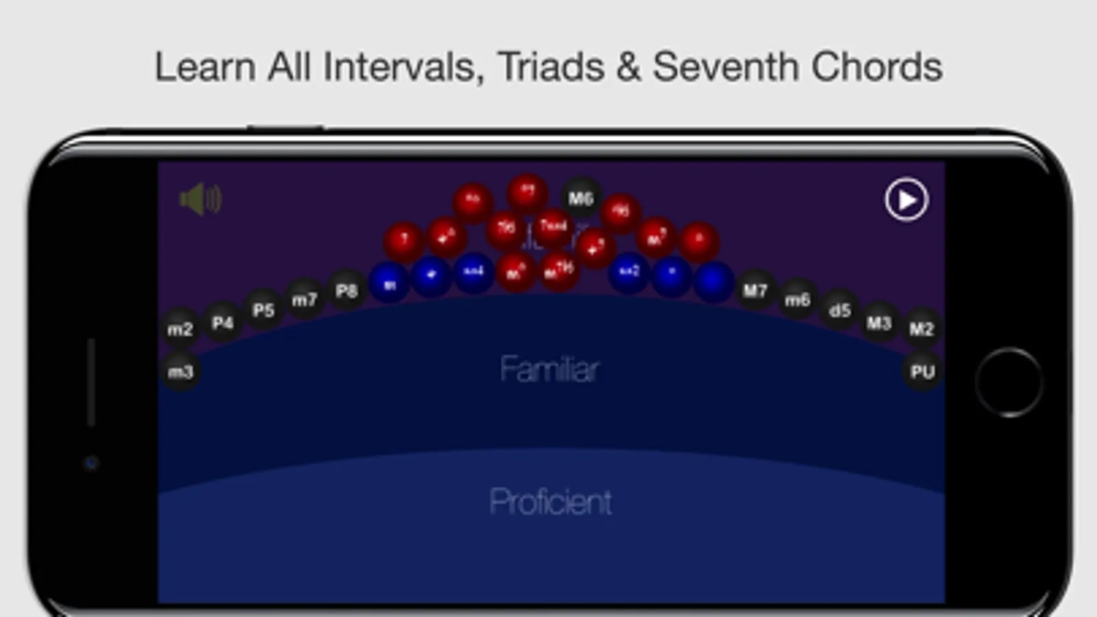As you improve your ear training skills, the spheres will move from the Unfamiliar area towards the Proficient area.