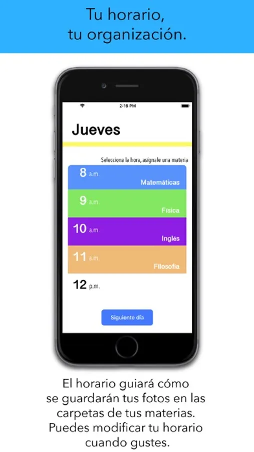 ¡Listo, tus fotos estarán organizadas por materia dependiendo la hora en que tomaste la foto!