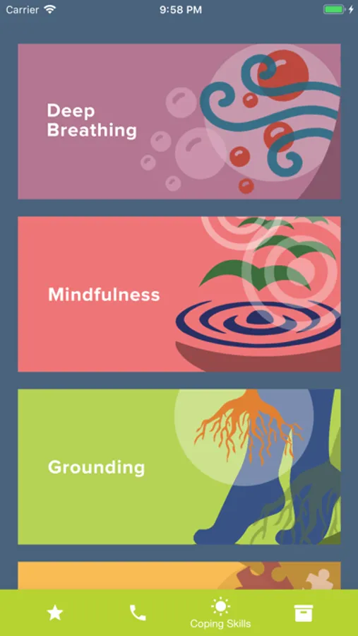 -Flip through cards to view some of the most trusted, psychiatrist-approved coping skills to use in any emergency, such as Grounding, Mindfulness, and Diversion