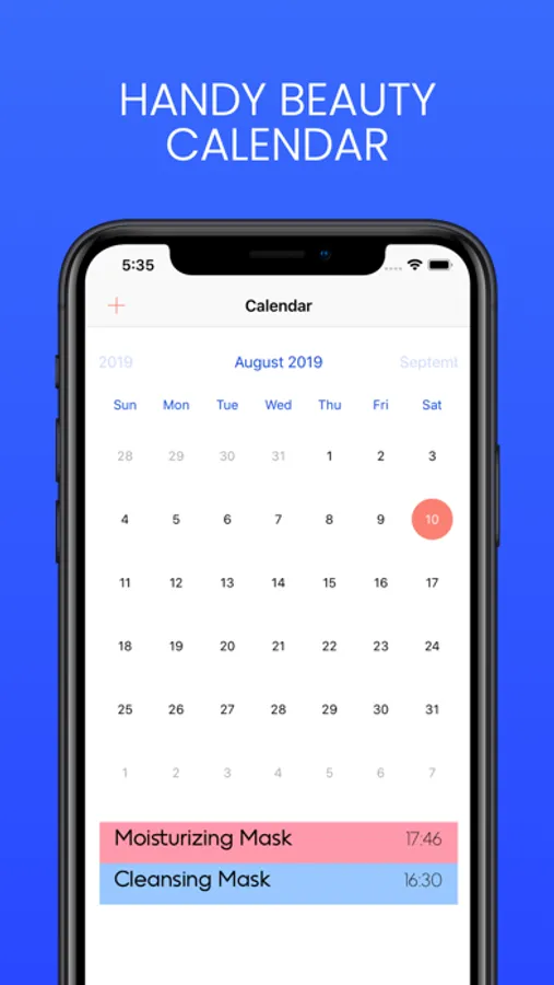 Beauty calendar will suit ideally to organize your routine. It'll remind you about your planned procedures at home or in a beauty salon, it will also create your individual plan for using care products. You can use different colors for events to make your plan even more descriptive.
