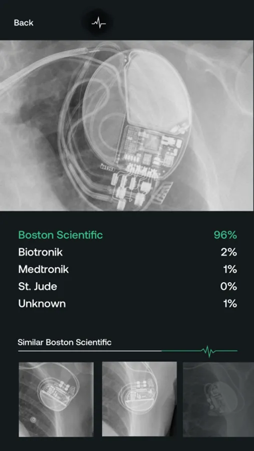 Pacemaker-ID uses a deep-learning model to determine the manufacturer of a given pacemaker and defibrillator in an x-ray image.