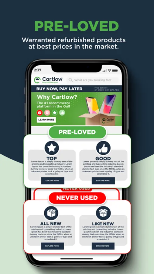 Welcome to Cartlow - The region’s leading re-commerce platform and the most affordable online shopping destination. Whether you are looking for refurbished, open box or even a brand new product, Carlow is your go to place! We’ve got you covered all across UAE, KSA and KWT and we strive to provide you with the perfect balance of affordability and quality. Give a second chance to pre-owned electronics that are rich in features and easy on your pocket. At Cartlow, we offer a wide selection of pre-owned smartphones and other cutting-edge gadgets from major brands, all of which undergo a thorough quality check and expert product qualification process. Every purchase on Cartlow comes with :-