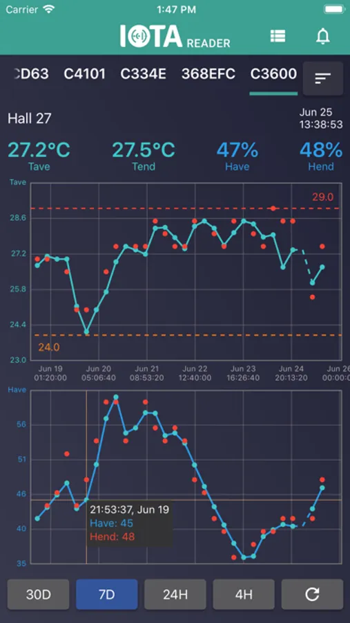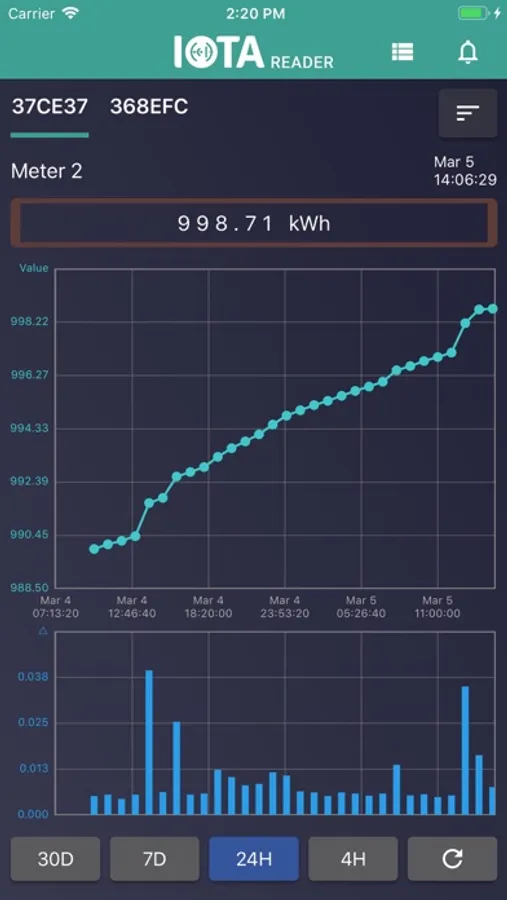 IOTA Reader was designed to visualize messages generated by IOTA devices, which provide data on usage (power, water, gas, heat) or other measurements: temperature, humidity, pressure, etc. The application allows users to connect devices using ID and passcodes provided with the devices and then view collected and processed data on dynamic charts. Users may set alerts individually for each device and get notifications. For users’ convenience the devices can be individually named. Each user may have access to multiple devices and the same device may be accessed by many users, if they have access to correct ID and passcode.