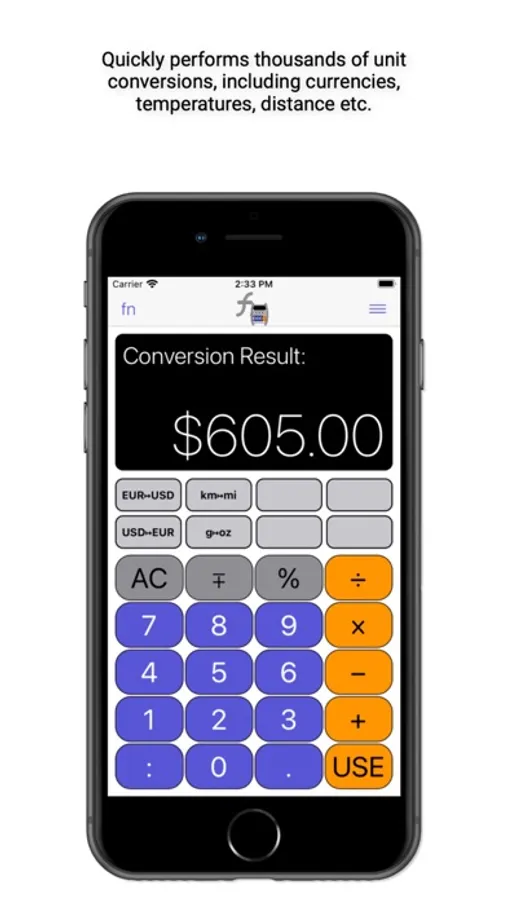 FunctionCalc has been found to be especially beneficial for those traveling to foreign countries that use different monetary and measurement systems. Keeping the host country's currency and measurement conversions in the preset buttons allows for quick conversion to the user's own familiar units, even if the phone does not have Internet connectivity at that time.