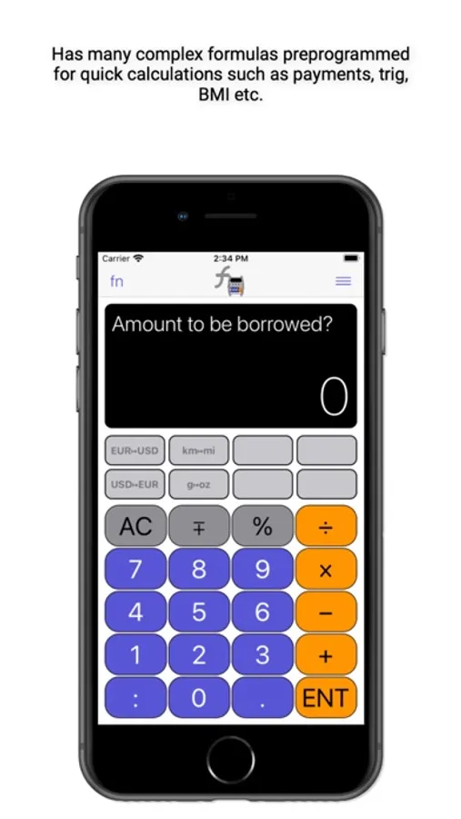 • Eight pre-set customizable buttons which may be set to allow for one-tap access to the formulas and conversions that are used the most