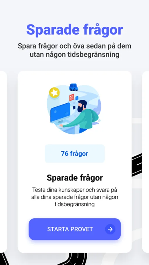Alla frågor är inte enkla och ibland behöver man öva på vissa körkortsfrågor lite mer än en gång! Därför kan du spara dina frågor och öva sedan på enbart dina sparade frågor utan någon tidsbegränsning!