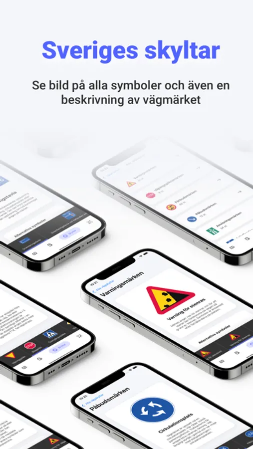 Körkortsguiden innehåller alla Sveriges vägmärken, med en tydlig bild och en beskrivning på skylten. Har skylten alternativa symboler så visas även dem under vägmärket! Du kan även utmana dig själv och testa dina kunskaper genom att öva på alla vägmärken med Vägmärkestest.