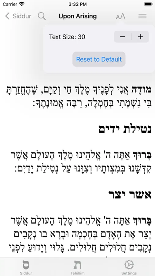 - Adjustable text size - read through the Siddur with ease, with the font as big or small as you want