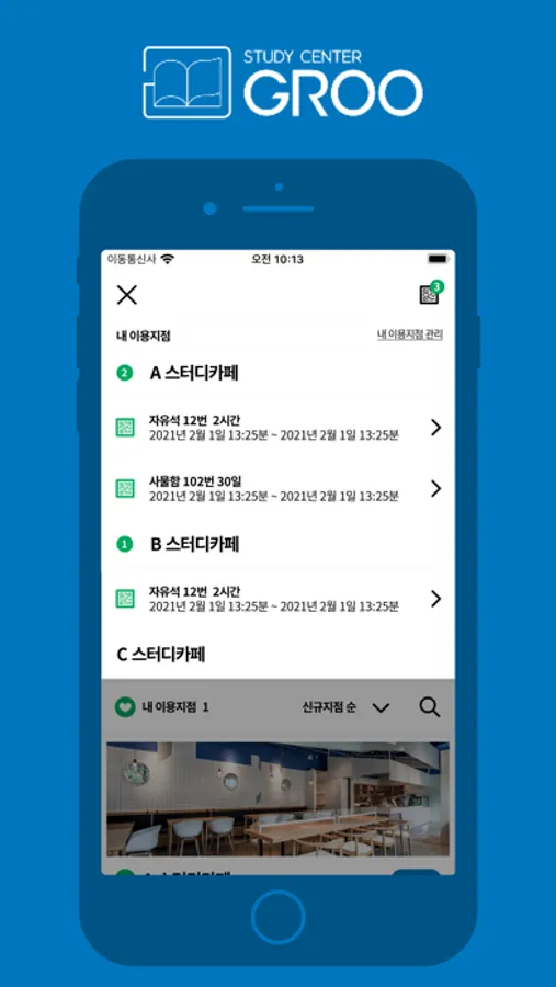 스터디카페와 프리미엄독서실을 이용할 수 있습니다.