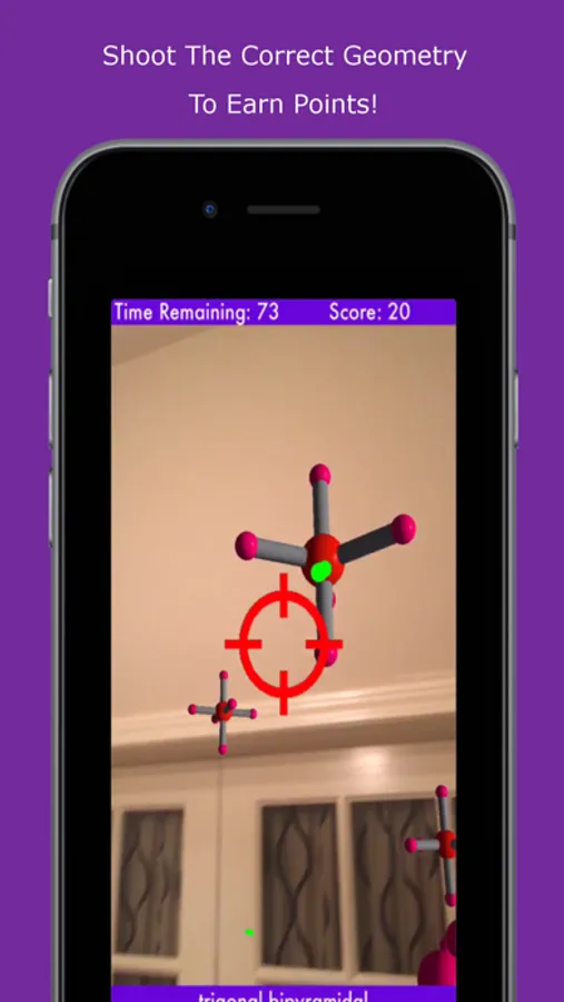 Each ten-second segment of the game selects a certain molecular geometry and the student must target these models in order to score five points.
