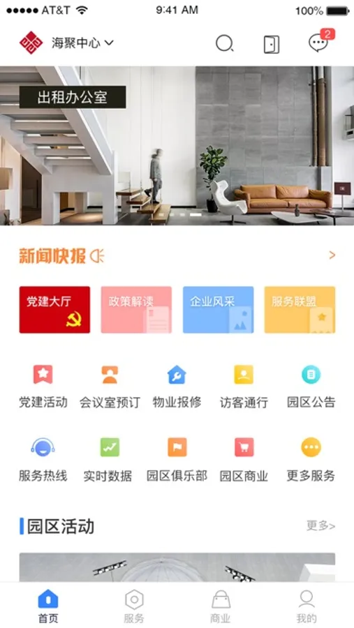 提供园区报修,投诉建议等在线服务,并实时了解服务进度