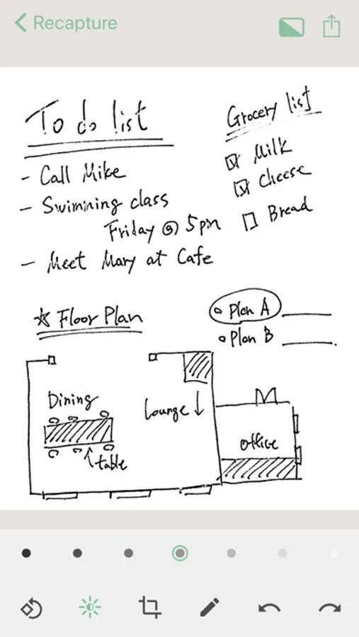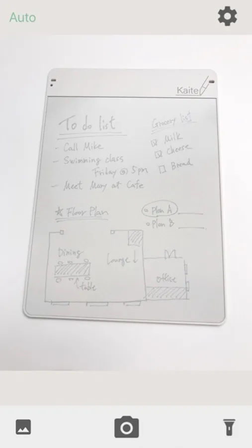Easy to use. Just launch the app and shoot the Kaite itself, it automatically recognizes the writing surface, corrects the tilt, etc., and makes it easy to see and digitize cleanly. Digitized memos can be saved to the camera roll, sent to email or cloud, and easily recorded and shared.