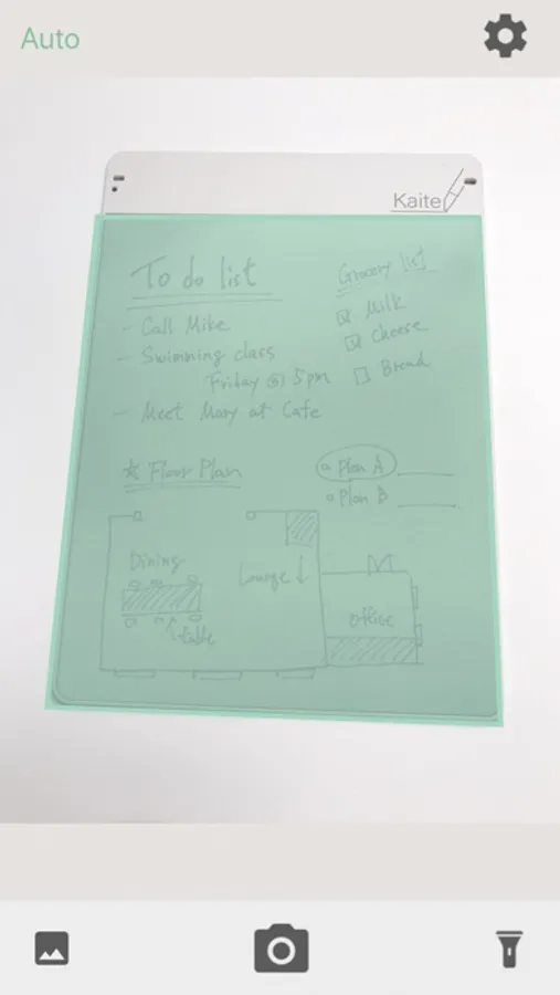 2. Make sure that the entire Kaite body fits on the shooting screen. The writing surface is automatically detected and shot.