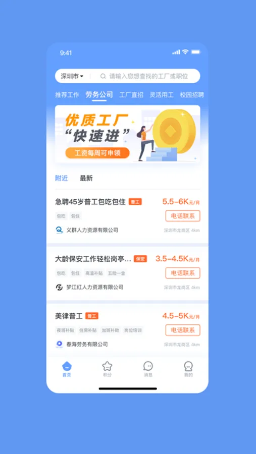 工派派主要是为蓝领工人提供优质的一站式求职服务。诚信招聘,所有招聘信息都会经过人工严格审核,安全省心;工人可免费求职、大数据精准定位匹配工作、快速上岗。具备稳定性高、功能强大、操作便捷等一系列优势,让工人们达到找工快、领薪快的目的。