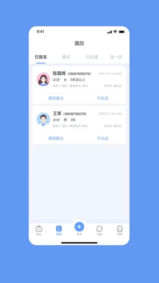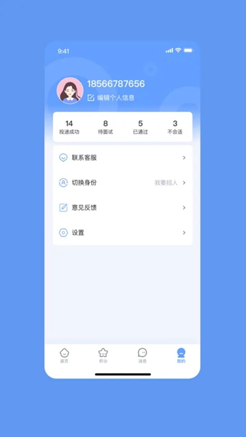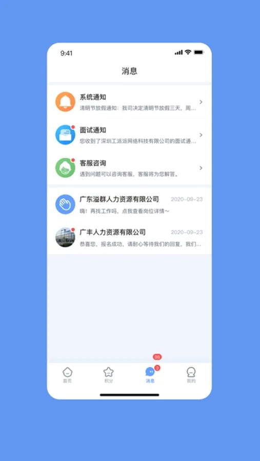 8.查看求职记录、查看面试通知、查看个人信息、查看考勤记录;