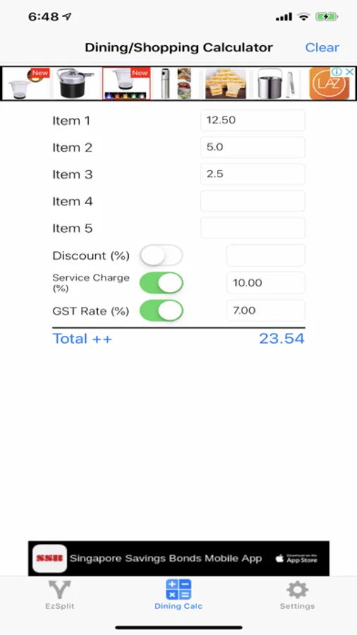 Dining/Shopping calculator (discount, service charge and Tax)