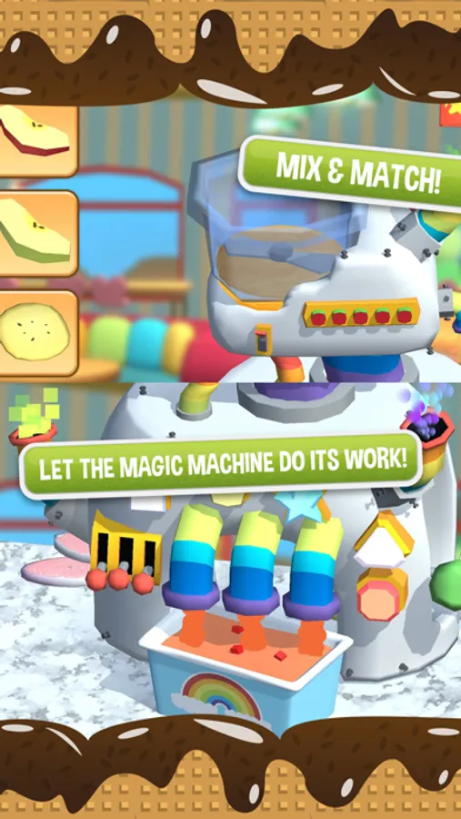 Make your dream dessert with Bamba Ice Cream 2! Slice Apples, Strawberries, Fish (yes, Fish!), drop them into the machine and out comes your custom-flavored sundae scoop! Assemble the scoops any way you want! Make a perfect looking chocolate-chip gelato with a cherry on top, or a messy, crazy sundae stack of ten scoops! It’s up to you!
