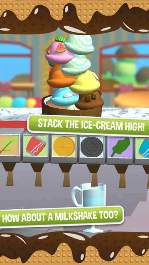 Create fancy Waffles and Pancakes, flip them high, stack them in a pile and plop more scoops of delicious frozen delights on them. Top them off with weird toppings like Fishbone, Spiders and Slugs!