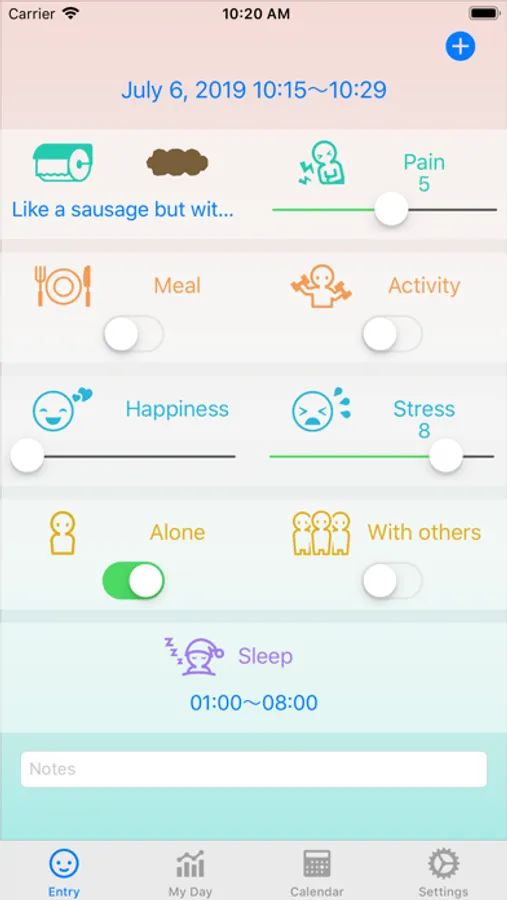 You can record the daily bowel habits, diet, sleeping cycle, exercise and other social activity details on the app and synchronize with iPhone Health Kit or other wearable devices to obtain the heart rate data. By tracking your total daily activity, you maybe able to discover the certain pattern of abdominal conditions and identify the influence factor. You can also record a “little happiness” you have experienced during the day which can be a positive factor to your bowel activity.
