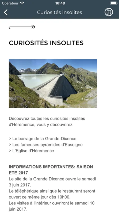 L’application gratuite de la commune d’Hérémence s’adresse aux citoyens et aux touristes. Un service d’information à la population est offert afin de relayer directement sur votre téléphone portable les actualités et alertes liées au territoire de la commune d’Hérémence. L’onglet touristique propose diverses rubriques pour visiter la région autrement. Explorez… rencontrez… séjournez… bougez. Découvrez une nouvelle source d’inspiration avec nos parcours-découvertes et laissez-vous porter par nos bons plans. Grâce à la géolocalisation, l’application vous emmène parfois hors des sentiers battus et vous offre un nouveau regard sur la région du Val des Dix. Toutes les informations touristiques seront à portées de main lors de votre séjour !