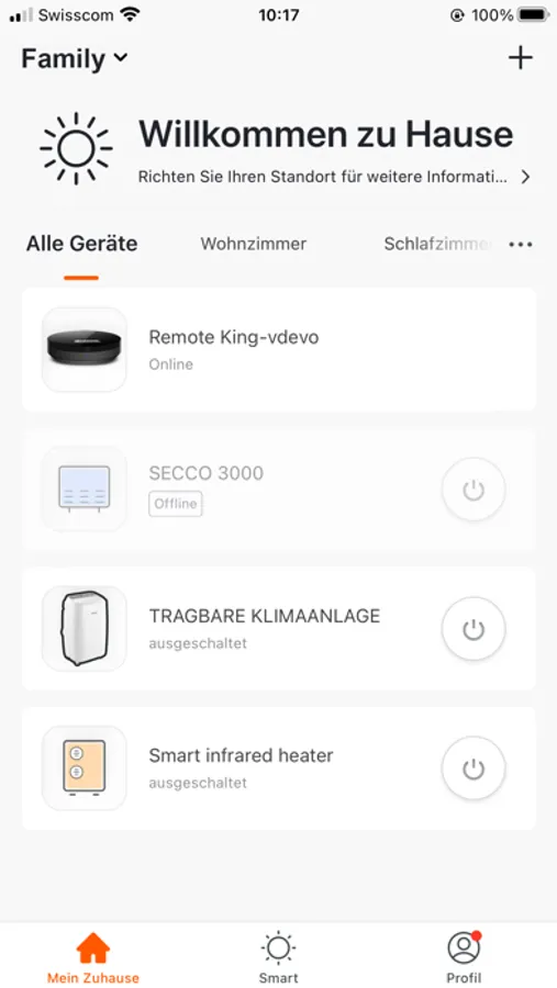 With the Smart Remote APP of Sonnenkönig you are able to connect to each device which is using an infrared sensor for remote control. Each device can be saved into your profile and multiple profiles for each room in your apartment/house can be created and amended as you wish. Our APP supports multiple languages and can be personalized with your email or mobile phone number.