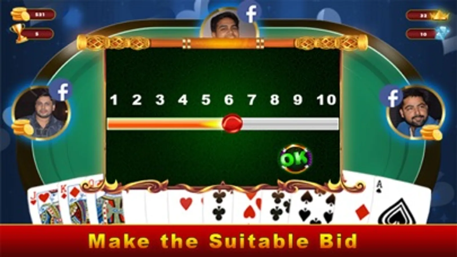 Call break gold spades is a four player game. Anyone can deal first or choosing deal by drawing a card from the deck, afterward the turn to deal passes to the right. Dealers are changing and cards are dealing in the anti-clockwise way. The dealer deals out all, every player gets 13 cards. The players pick up their cards and look at them and begin with one by one player calling their possible winnable hands. Need to play with stable rules and make sure they collect call point and may win extra point than their called hands. Spades are the trump cards. In every trick, must follow the same suit; if unable that, must play a trump card or player can play any card. Must try to win the trick, A trick is won by the highest played of the same suit; if anyone will not trump. The winner of per round leads to the next round. Player that takes at least as many tricks as their bid receives a score equal to the bid. There has total of five rounds and highest score at the end of all rounds. After the all rounds, winner and runner-ups are declared.