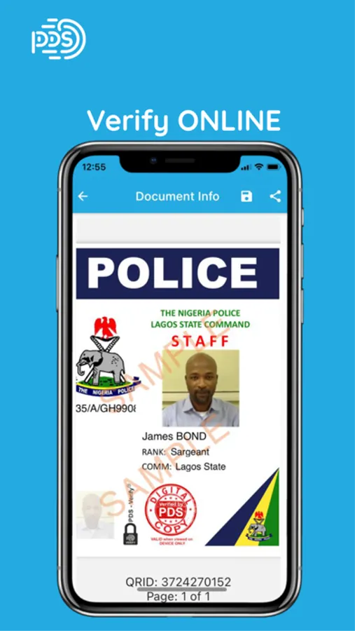 Simply scan PDS enabled code on any print surface and follow prompts to display verified source/origin data on your device. It has a simple and intuitive user friendly interface as well as ONLINE and OFFLINE verification capabilities which is handy when verifying in the field or remotely.