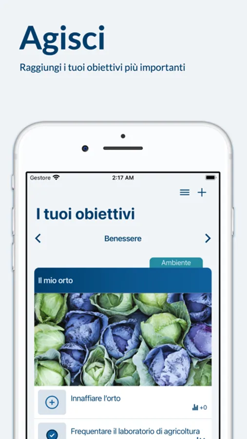 - Una sezione obiettivi studiata per aiutarti a definirli, raggiungerli e rimanere sempre connesso con i tuoi valori.