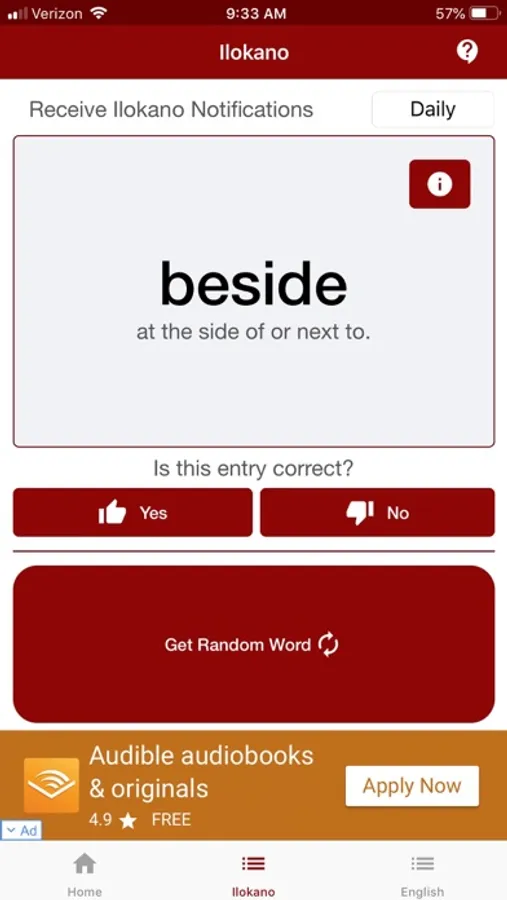 The application requires Internet connectivity. Download it now and expand your vocabulary of the Ilokano language!