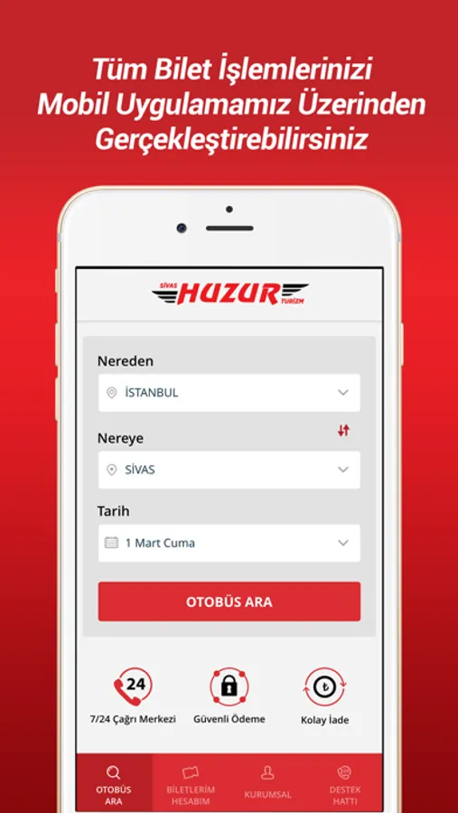 Huzur Turizm'in şehirlerarası ulaşım biletlerinin satılmasını sağlayan bir iPhone uygulamasıdır.