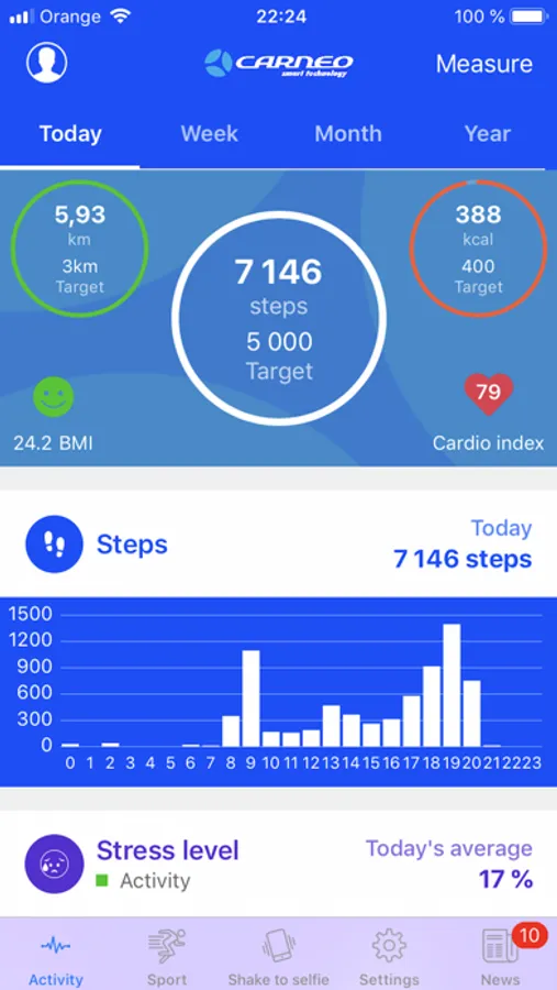 APP CARNEO Fit + is used to connect CARNEO fitness bracelets with your phone. The application aggregates all the data measured by the bracelet and displays the measured data in the statistical graphs. It also evaluates various physical data such as stress, cardio index, BMI, evaluates sleep quality and motivates you to perform better daily to live a healthier life. The app has a history of measured data that you always have. For women, a menstrual calendar is available with prognosis for menstrual days and ovulation, helping women to plan pregnancy.