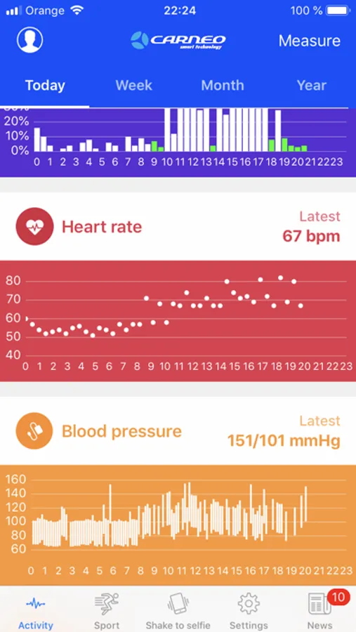 Carneo app allows you to store health data such as steps, heartbeats, blood pressure etc. into the Health app.