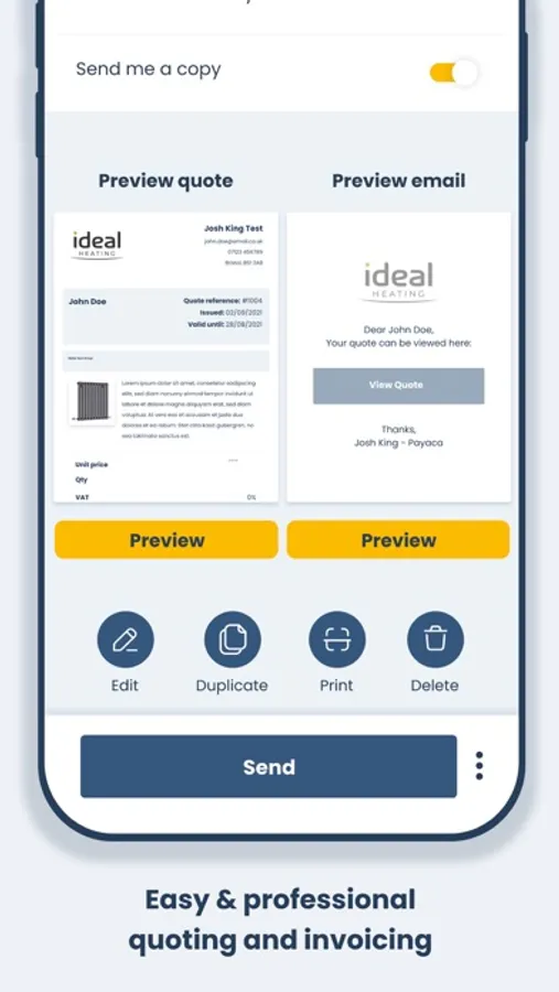 - Send your professionally branded quotes, estimates and invoices