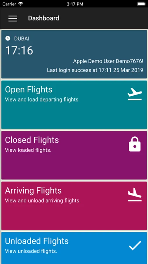 • Allow load supervisors to log in and be presented with a list of flights and flight details